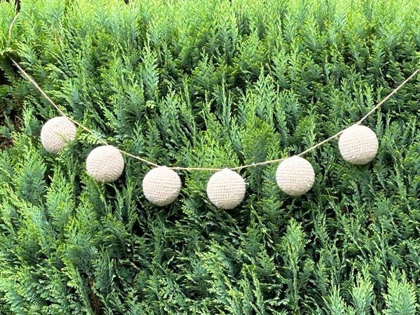 Wil jij wat meer decoratie voor in of rondom je huis? Dan zijn deze gehaakte bolletjesslingers misschien wat voor jou... Het zijn stevige bolletjes met een omheengehaakte buitenkant. De slingers zijn beschikbaar in verschillende kleuren en aantallen.